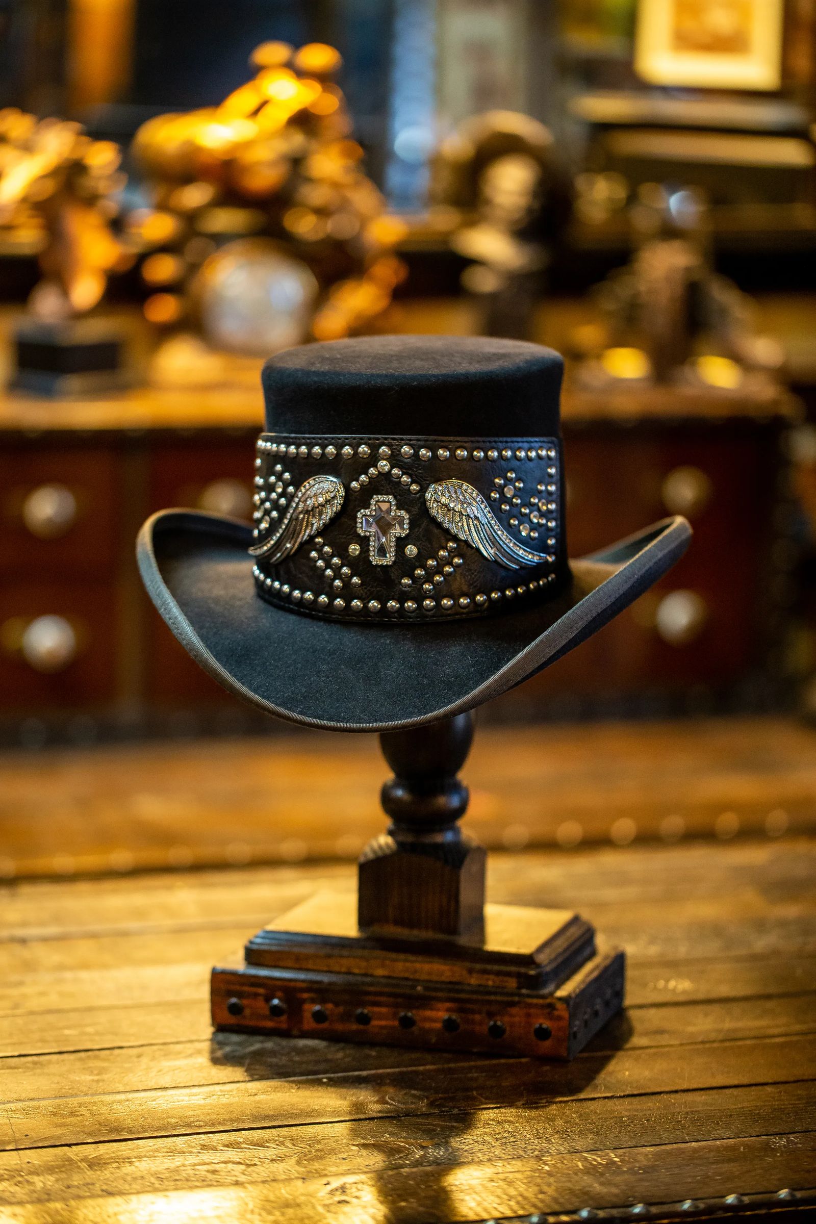 High Spirit will be your hat for your outlaw spirit, the way you separate yourself from the rest. It takes a bold person to wear a bold hat, and that is what you are. Trim will vary based on availability as these are entirely custom.