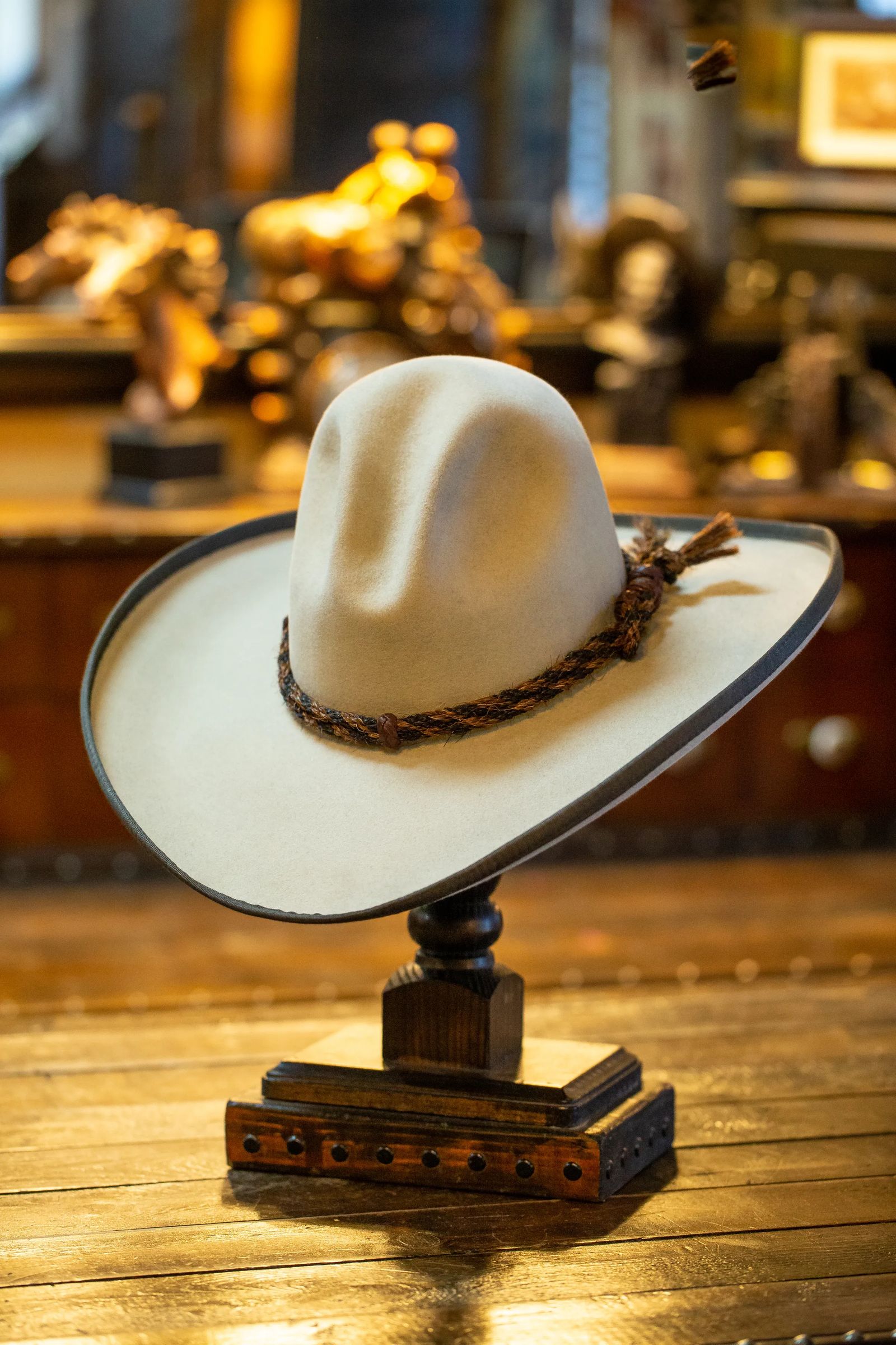Montana Kid is for the outlaw, or any hardworking person just like yourself. Shaped just the way you would like, made in any color, and trimmed with the band of horsehair or pick another of your choice.