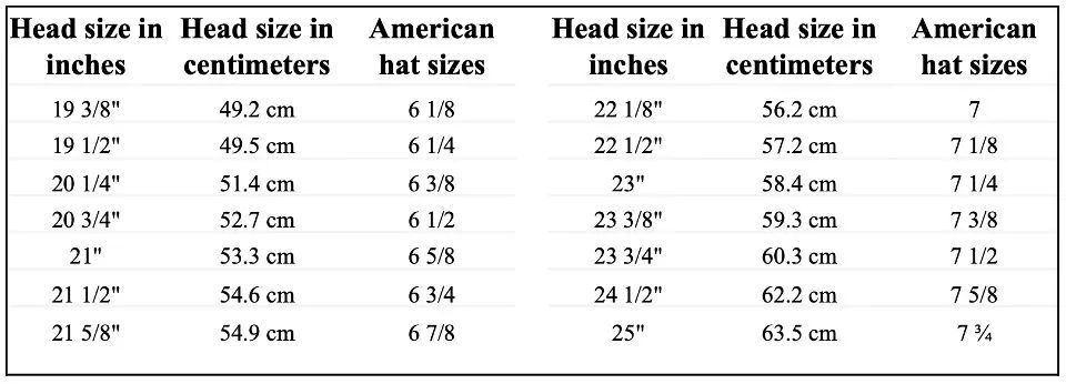 Measure the distance around your head at the position where your hat normally rests. This is done above the ears and across the forehead. You should have someone take the measurements for you to be accurate. Sit in front of a mirror while someone else measures your head. Have them tighten the measuring tap and loosen it a couple of times to determine the comfort level of how you would like your hat to fit. Your head may be between sizes. Do not let that affect the measurement. Hats can be fitted to within a 1/16 of an inch. If you have an existing hat you may want to compare the hat size with the measurement you took.